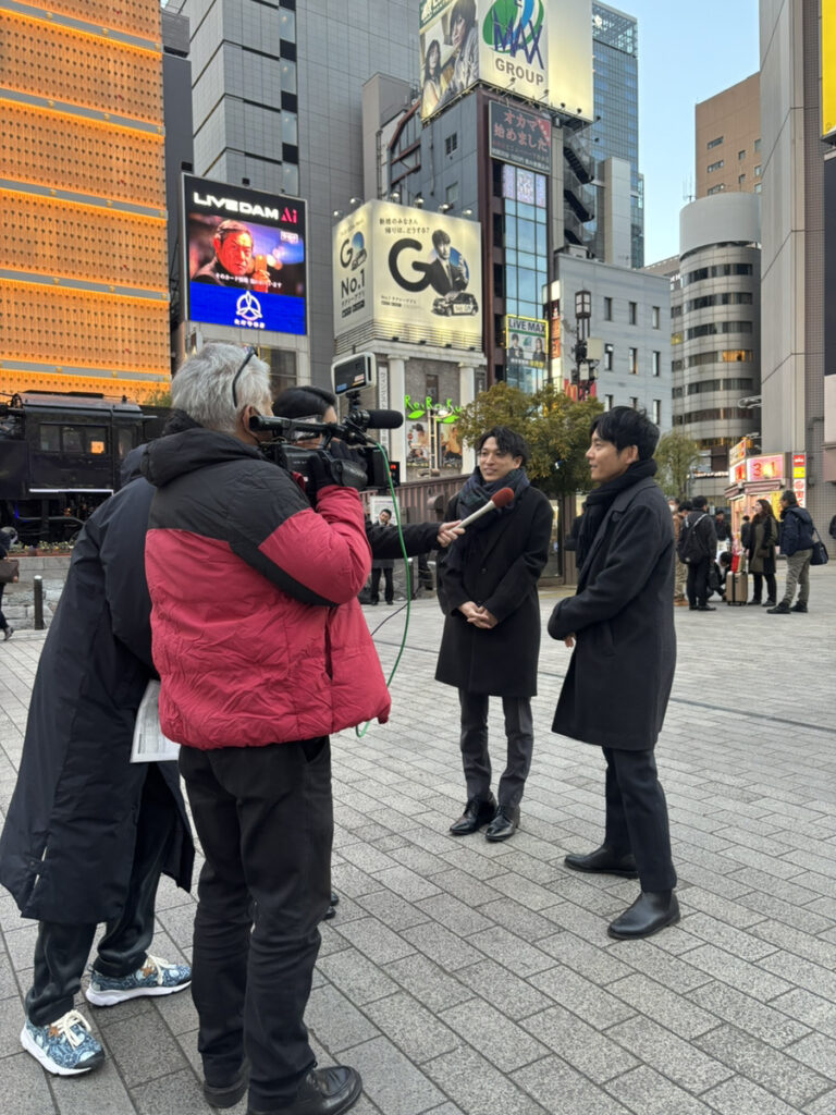 新橋で、まるで田舎者が都会に来たかのようなテンションで記念写真を撮っていると、突然テレビカメラを持った番組スタッフらしき方に声をかけられ、なんとそのまま取材を受けることに!