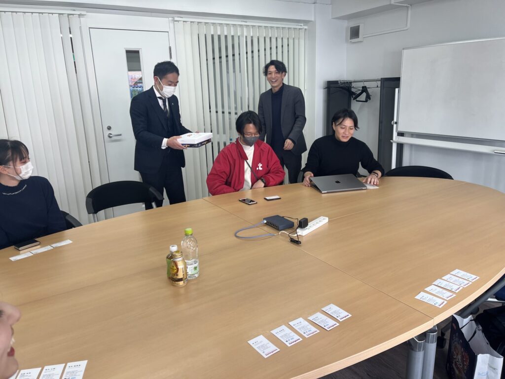 TONEGAWA様のミーティングルームにご案内いただいたあと、すぐに社員の皆様が来てくださり、いよいよ初対面の時間となりました。