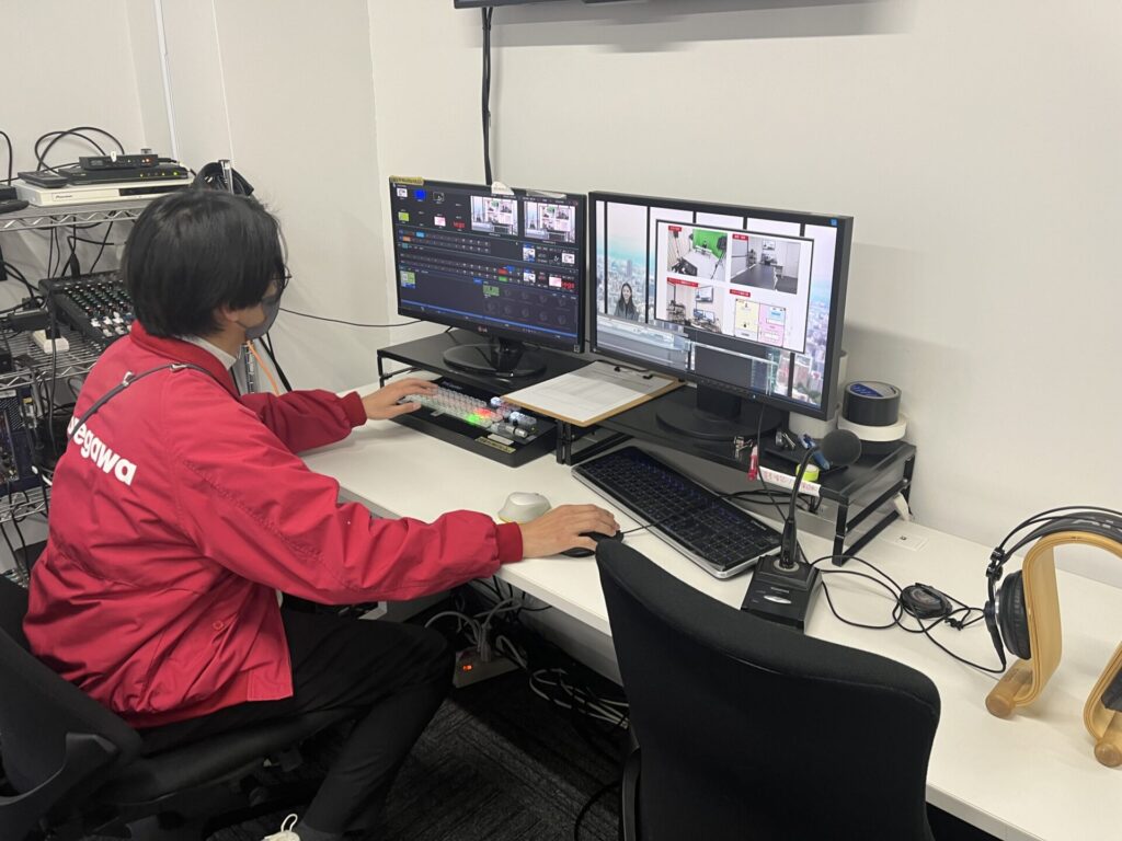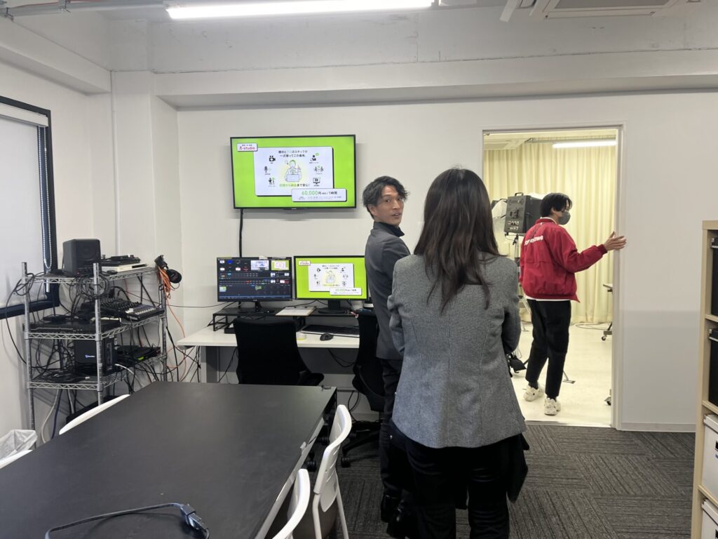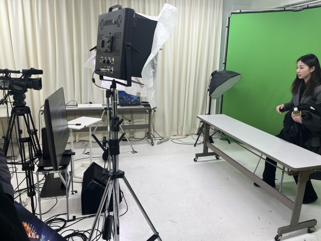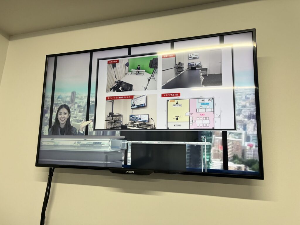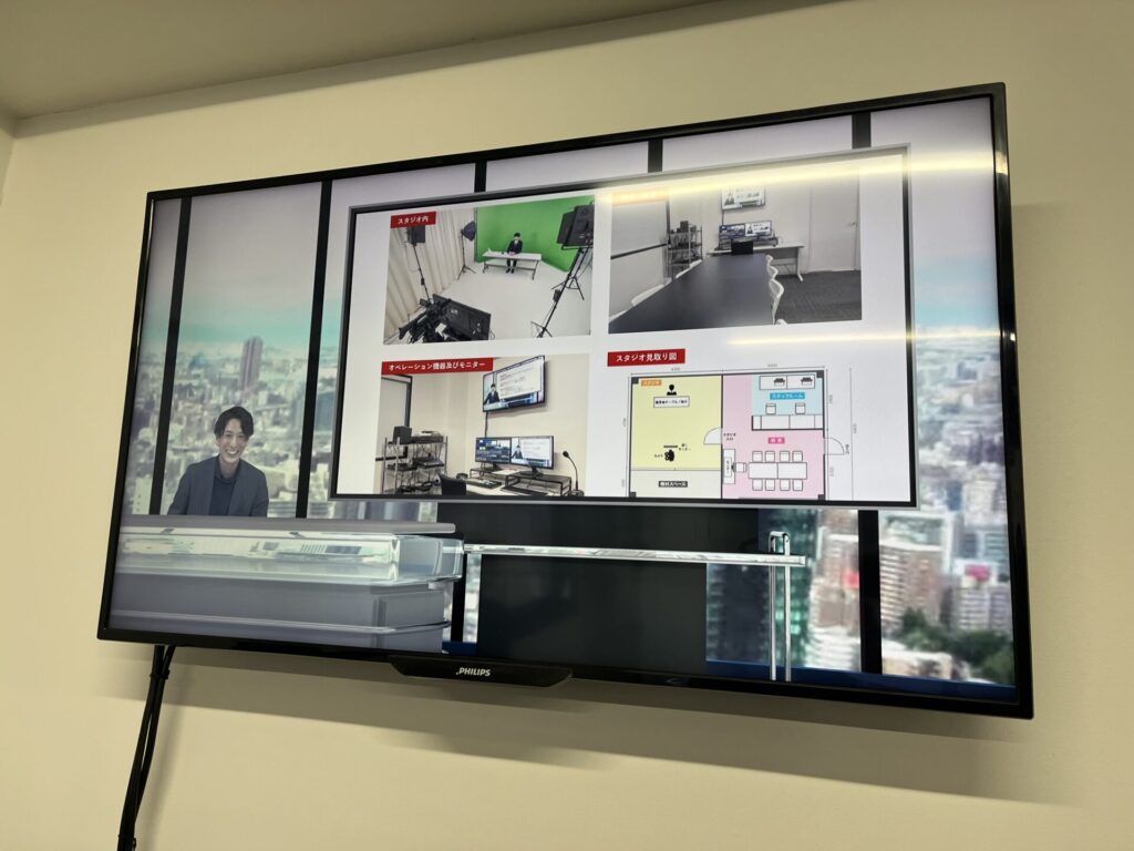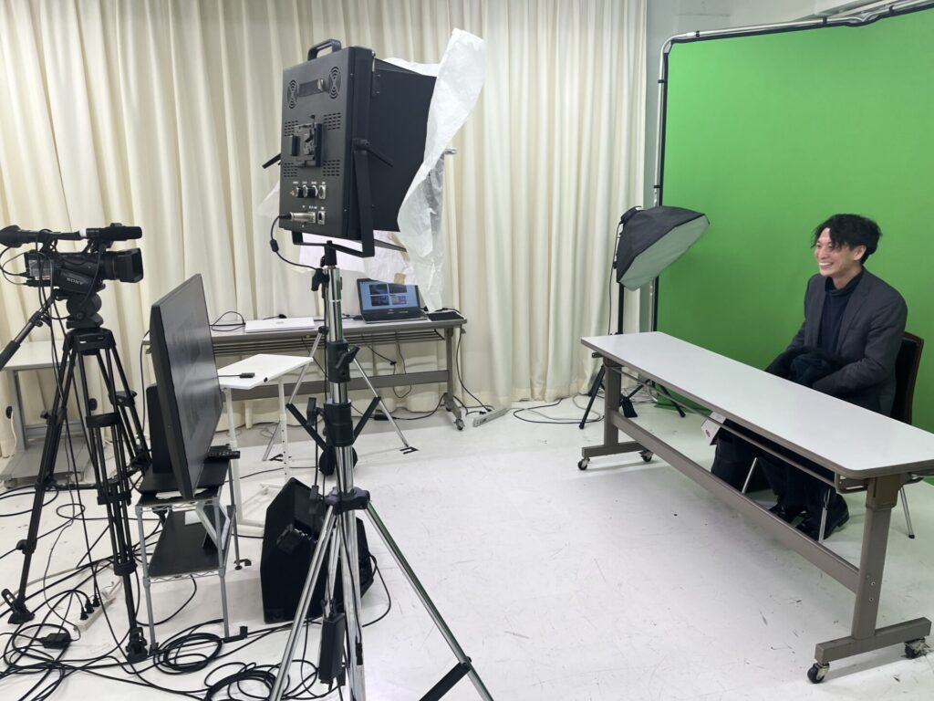 スタジオ内には大きなモニターや多くの撮影機材が揃っていて、まさにプロ仕様の環境です。