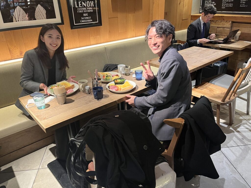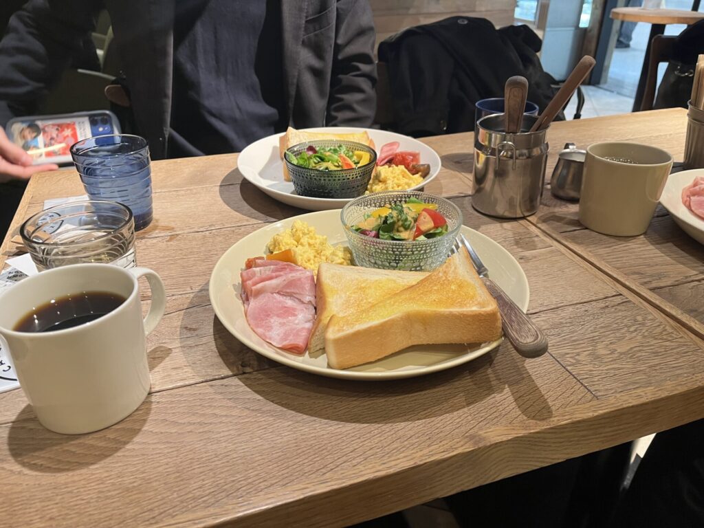 新幹線に乗る前に、いつものカフェでモーニングを楽しみながらミーティングを行いました!