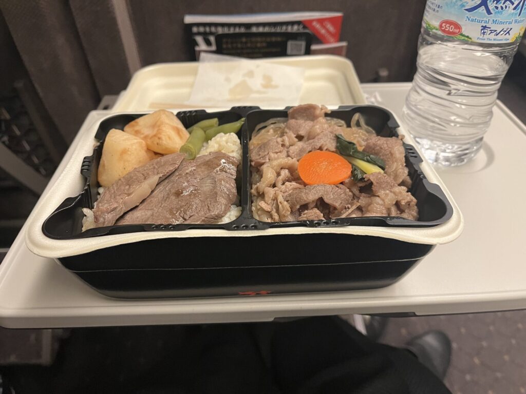 車内では、かずきが「どうしても牛肉弁当が食べたい!」と熱望していたので、ここはひとつ奮発して駅弁を購入。