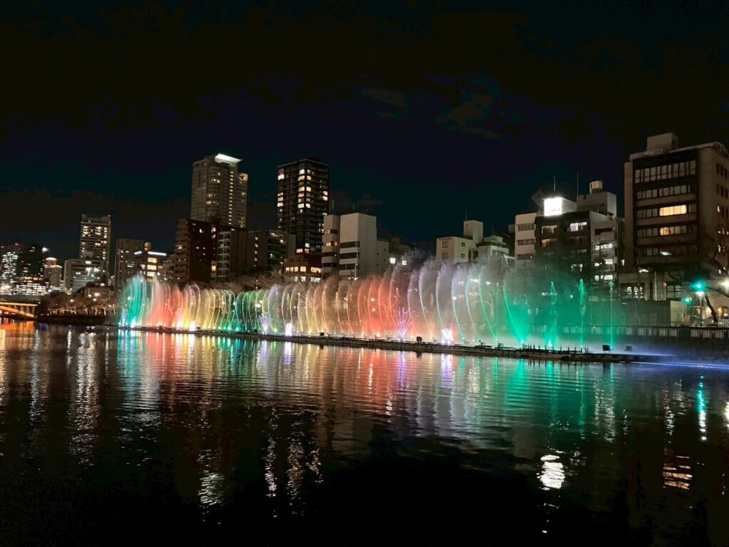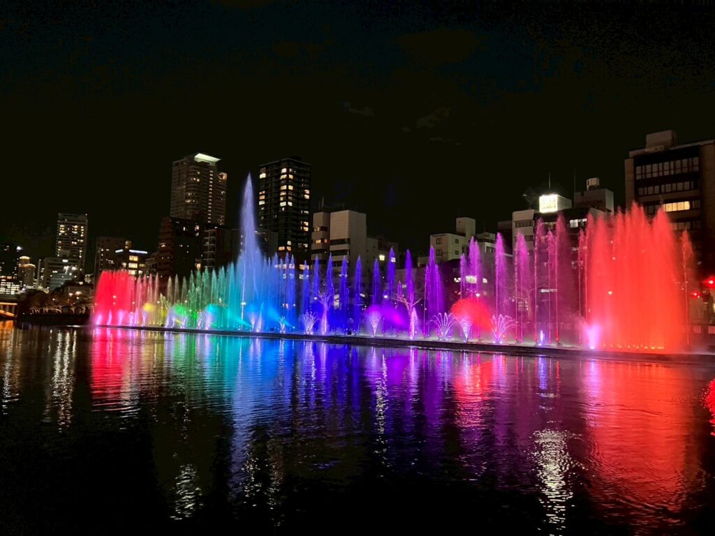 クルーズの途中では、噴水のイルミネーションも見ることができました。